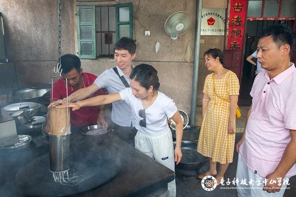 活动当天,青年教师集中前往三乡镇前陇古村开展研学活动。首先由活动举办方老师带领全体青年教师参加学习古村落的主要古迹,以及古迹背后感人的故事,使青年教师对中山乡土文化有初步的了解。古村导赏后,在举办方老师的带领和介绍下,青年教师分组进行研学活动,分别亲身体验了三丫苦叶仔制作,三乡濑粉制作、传统通米制作等乡土特色食品的制作过程。最后,青年教师们一边品尝自己亲手制作的特色食品,一边欣赏自己创作的木偶剧。