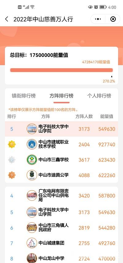 创办于1988年的“中山慈善万人行”活动不知不觉已经走过了34个年头,2022年,中山慈善万人行迎来35岁生日,今年的主题是:“凝聚慈善力量,共建博爱中山”。由于新冠肺炎疫情影响,2022年慈善万人行活动采取线上活动方式开展。进一步营造热烈氛围中山慈善万人行总指挥部组织开发了线上万人行小程序,于2022年2月11日--16日推出。sunbet官网积极响应号召,组建了“sunbet,sunbet官网”方队动员了3173名师生员工参与2022年中山慈善万人行线上活动积极参与爱心捐步和线上捐款,取得549630能量值,在全市所有方阵中排名第五。sunbet官网师生员工积极发扬“人道、博爱、奉献”的红十字精神,传承中山优良传统,共建中山博爱之城,为中山慈善事业高质量发展贡献一份力量,共同谱写爱的乐章。