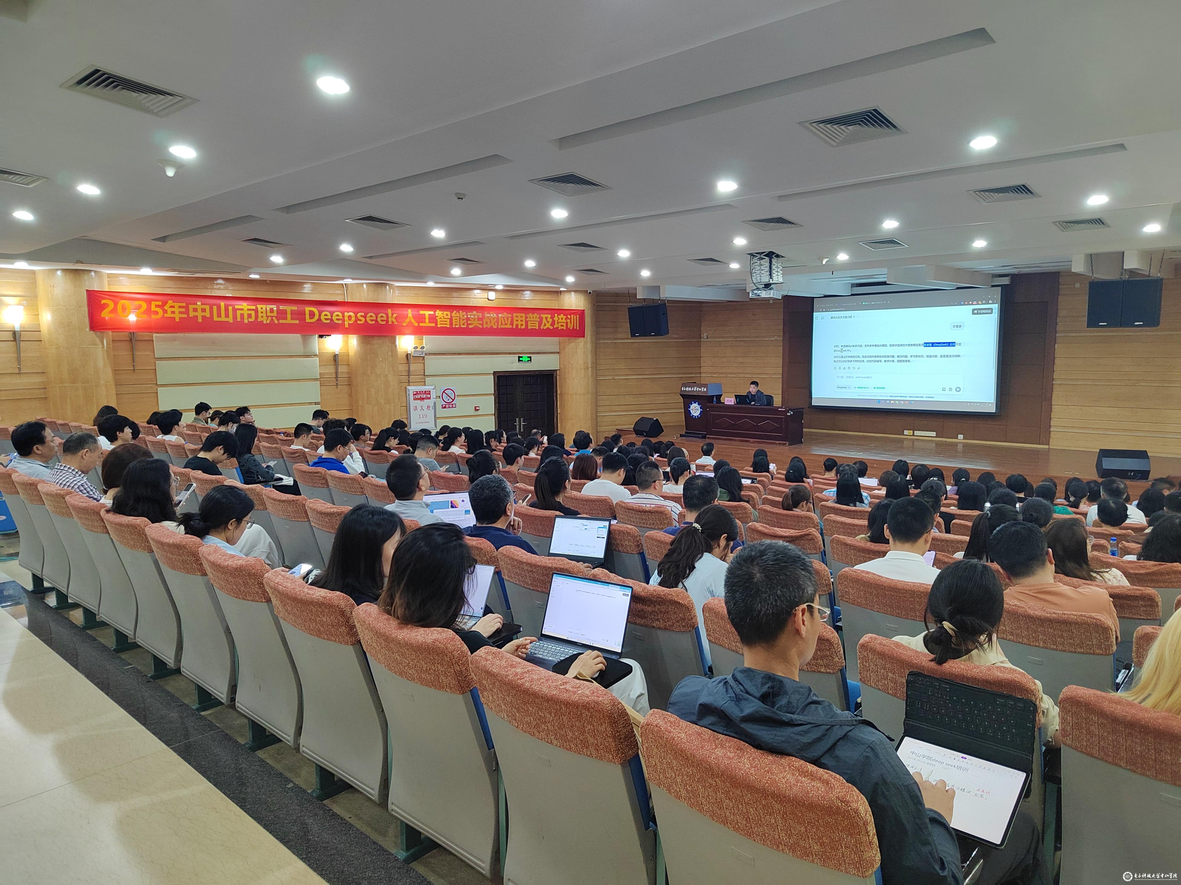 为加快人工智能技术在工作中的应用步伐,提高办公效率和业务能力,推动智能化工具在日常办公中的应用,按照中山市总工会文件精神,3月27日,sunbet官网联合人事处在图书馆报告厅举办了“DeepSeek人工智能实战应用培训”。本次培训吸引了全校200余名师生员工参与,校党委书记袁正希、党委副书记叶立新出席了活动。